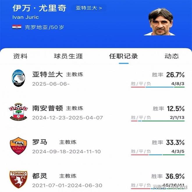 过去的周末,亚特兰大主场0-3不敌萨索洛,遭遇联赛两连败,11场比赛2胜7平2负,排在意甲第13名,落后榜首的国际米兰多达11分,距离降级区只有6分之遥。糟糕的成绩,成为尤里奇离队的重要原因。